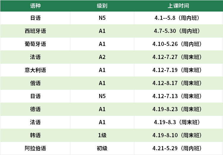 4月开班安排